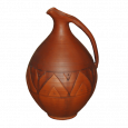 Глиняный кувшин с высоким широким горлом, небольшой носик и изогнутая ручка. Верх и середина кувшина украшены рельефным узором.