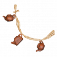 Подвесное украшение в виде трёх глиняных чайничков на косичке