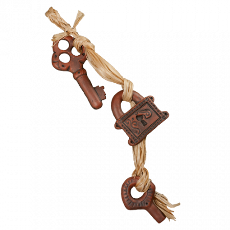 Декоративная вязанка с глиняным замочком и ключиками.