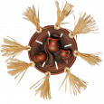 Большая сувенирная тарелка с лыком и тремя предметами по середине.