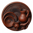 Настенная тарелка с изображением глиняной посуды: кувшинчик, чарочка, тарелочки.