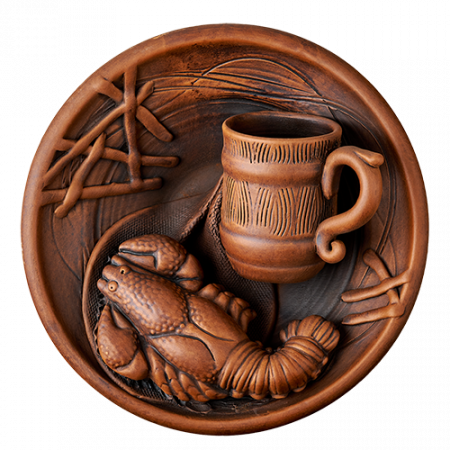 Большое настенное блюдо с изображением рака, греющегося на солнышке. Подарок любителям раков, а также всем, кто родился под этим знаком.