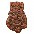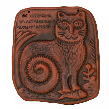 Плакетка с изображением довольного кота, только что полакомившегося рыбкой.