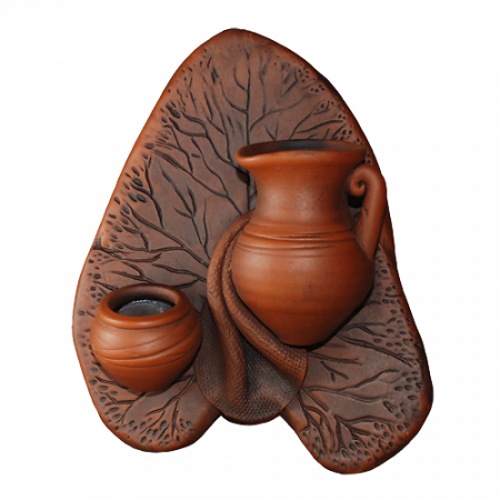 Глиняное панно лукошко с двумя кувшинами. Размер изделия: 11*13 см. Панно можно подвесить на стену.