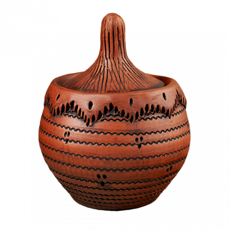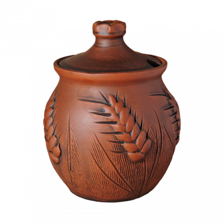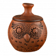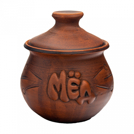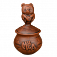 Банка для мёда в виде бочонка с пчёлкой. Изнутри покрыта глазурью.